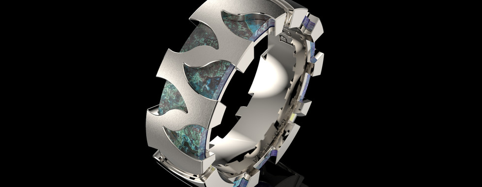 Défi technique : Mettre de la couleur à l'intérieur du corps de bague. Résistant au lavage des mains, et aux produits chimiques, comme les parfums et savons. Gardant sa couleur avec l'usure du temps.